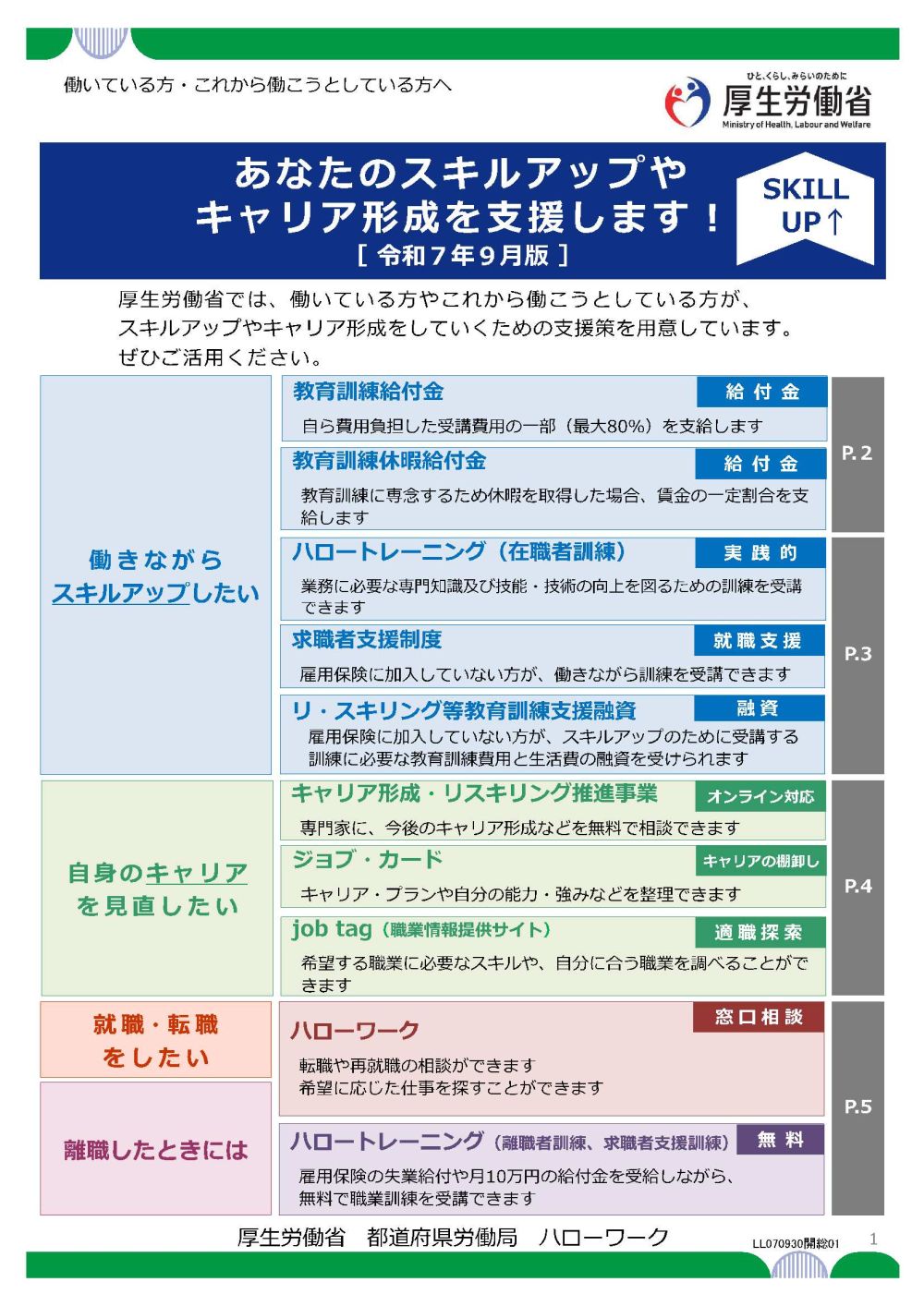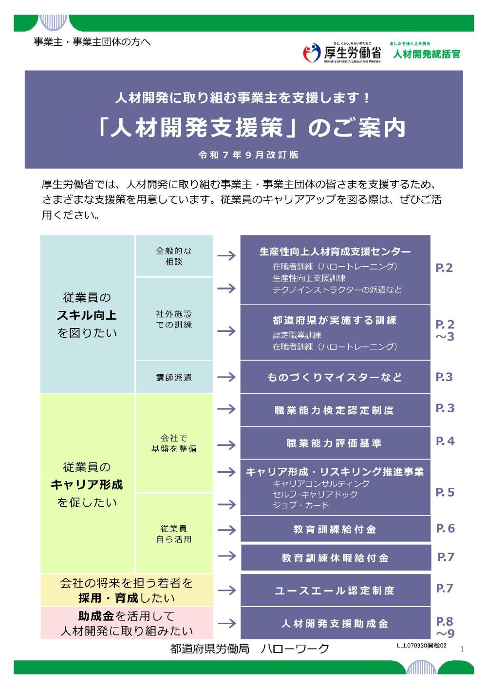 人材開発支援策について、最新のリーフレット(令和7年9月版)をご参考ください。