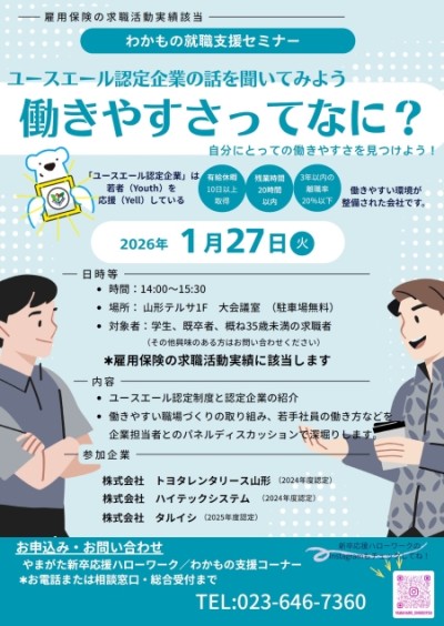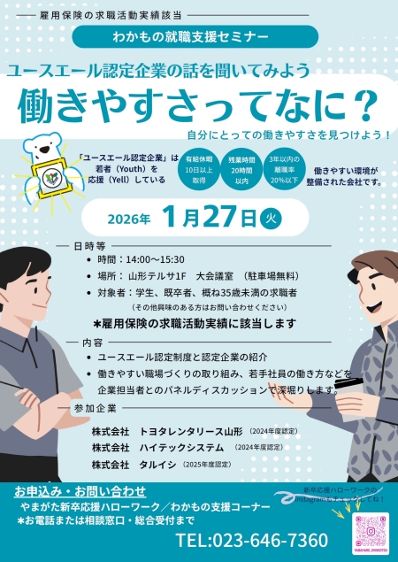 【わかもの就職支援セミナー】ユースエール認定企業に話を聞いてみよう ~働きやすさってなに?~