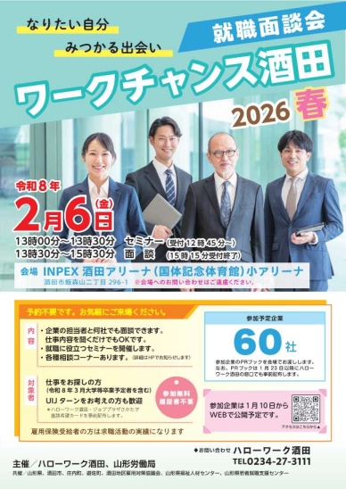 就職面談会「ワークチャンス酒田2026春」が開催されます!