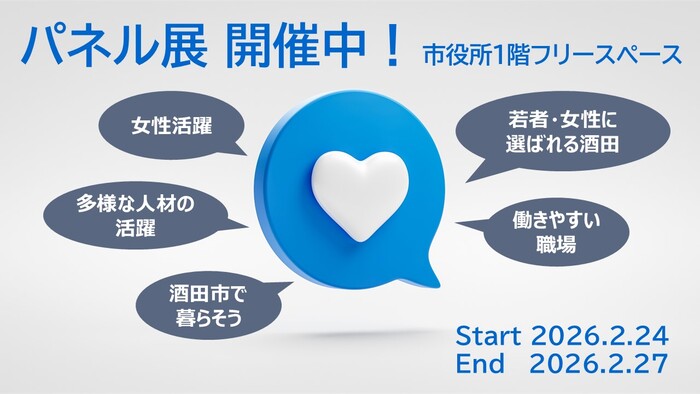 市役所1階フリースペースにて、若者・女性に選ばれる酒田に向けた取組みに関するパネル展を開催しています!
